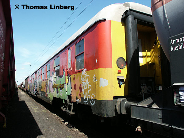 Sichtung 03.2013: Der Wagen hat eine Klimaanlage bekommen, die an einer der Stirnseiten eingebaut wurde. (Bilder sind im Bauartverzeichnis unter der Bauart Unterrichtswagen 345)
