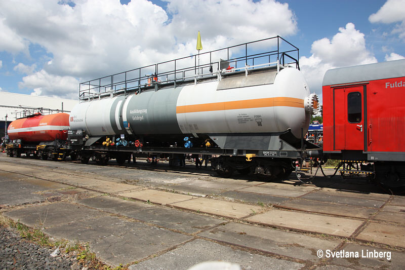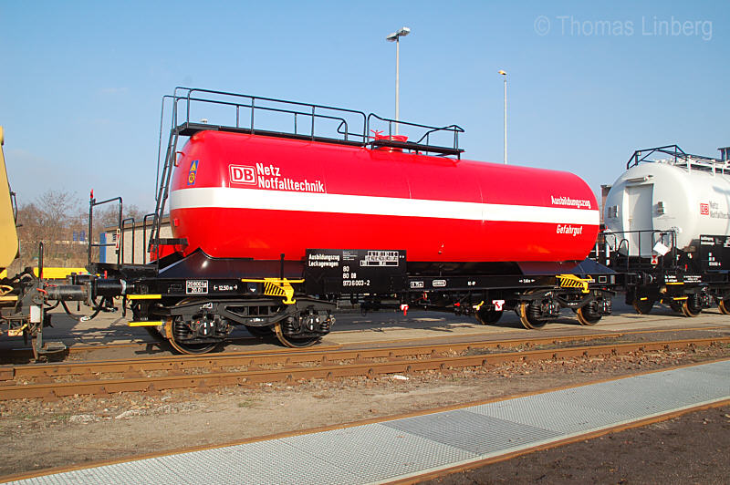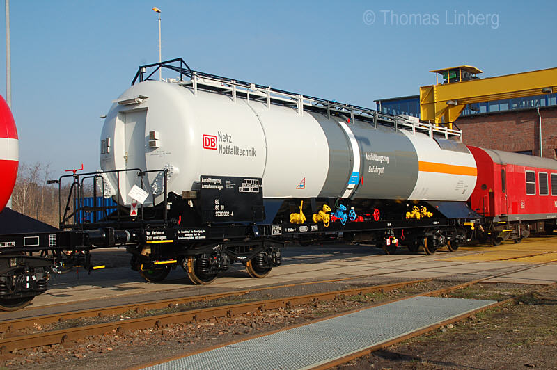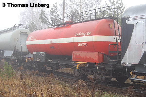 Über die in der Wagendatenbank genannte Bauartnummer 540 habe ich mir längere Zeit Gedanken gemacht und bin zu dem Schluss gekommen, dass diese nicht stimmen kann. Bei der DB war die Bauart 540 mit Stoffvorratswagen belegt. Nach dem Bauartverzeichnis vom 01.10.1997 ist die Bauart 540 jedoch nicht mehr belegt. Nach wie vor gibt es jedoch die Bauart 801, in der vierachsige Übungskesselwagen zusammengefasst sind. Diese sind allerdings dem Sachanlagenkonto 0881 zugeordnet, also ehemaligen DB-Bahndienstwagen (DR-Bahndienstwagen 0882). Das scheint also auch nicht zu passen. Eine weitere Möglichkeit scheint die von der DR vergebene Schlüsselzahl zu sein, die bei einigen wenigen DR-Bahndienstwagen in Klammern angeschrieben war, aber auch hier zeigt sich, dass unter der Schlüsselzahl 540 Materiallagerwagen geführt wurden.