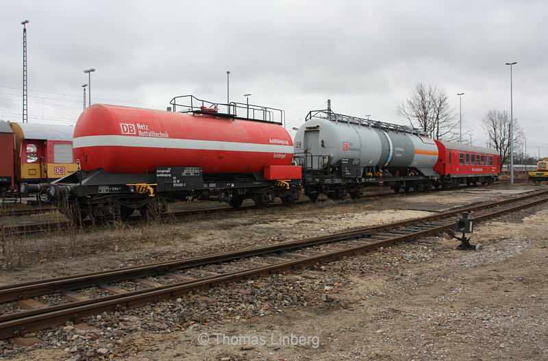 Die drei erstgenannten Wagen entstammen dem Wagenpark des Ausbildungszuges Havariedienst, der im August 1992 bei der DR in Dienst gestellt wurde und damals die folgenden Fahrzeuge umfasste: