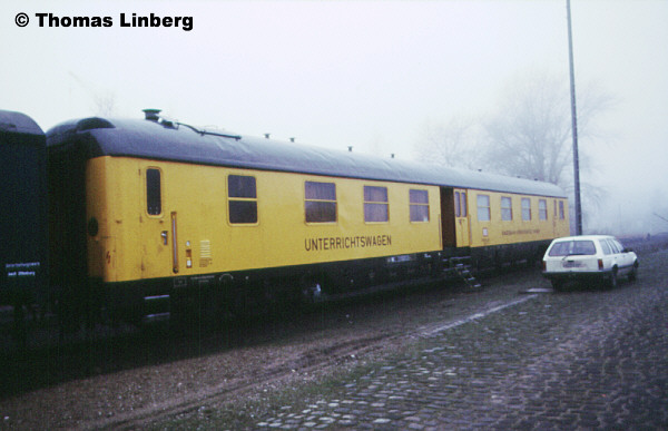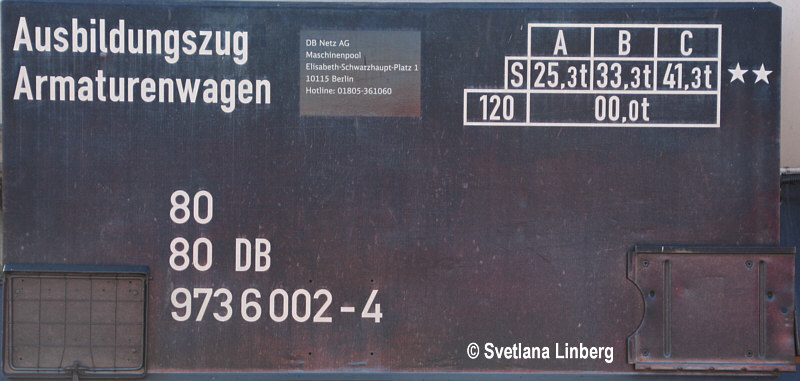 Mir liegen Bilder vor, die den Ausbildungszug kurz nach seiner Indienststellung zeigen. Deutlich zu erkennen ist die Anschrift "Armaturen-Wagen (540)". Demnach handelt es sich bei der "540" eindeutig um die DR-Schlüsselzahl und der Wagen war tatsächlich den Materiallagerwagen zugeordnet. Weiterhin offen ist die Frage, ob und welche Bauartnummer der Wagen bei der DB AG bekommen hat?