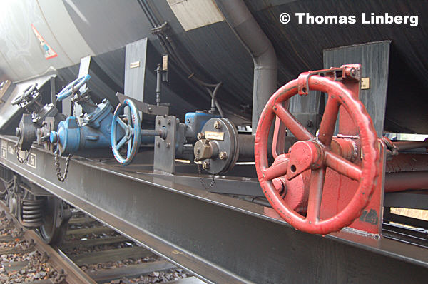 Der Armaturenwagen ist mit diversen Ventilen versehen, an denen die Funktion und Handhabung demonstriert und geübt werden kann. Der Wagen ist übrigens über eine stirnseitige Tür an der Bremserbühne begehbar. Im Innenraum sind weitere Armaturen angebracht.