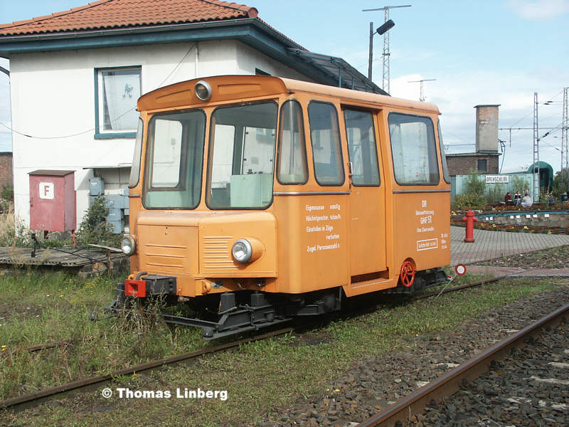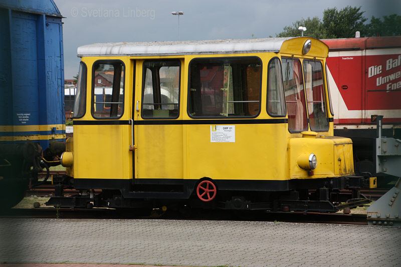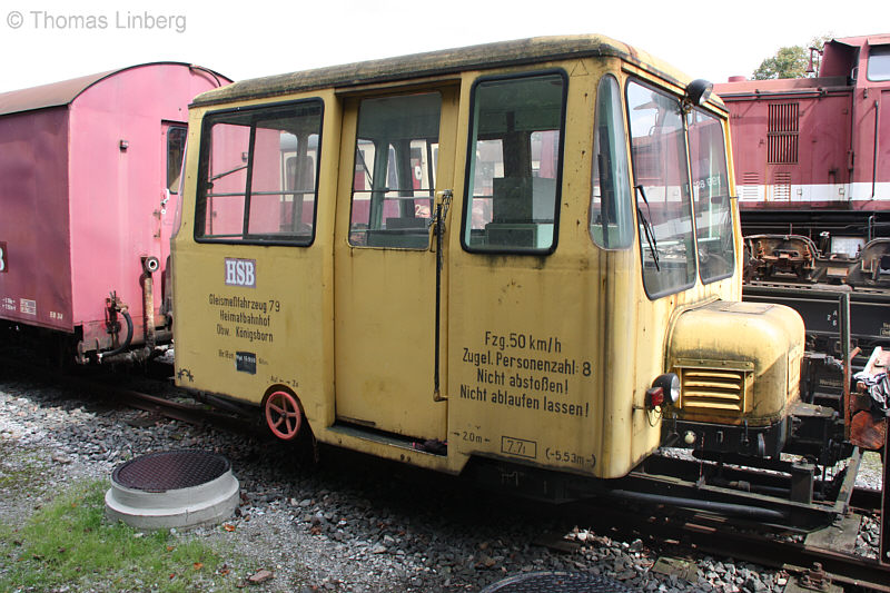 Das GMF 79 wurde in den 80er Jahren für die Harzer Schmalspurstrecken aus dem GMF 61 umgebaut. Es gehört heute den Harzer Schmalspurbahnen (HSB) und ist in Wernigerode-Westerntor abgestellt. |