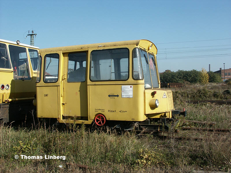 ![]() Auch dieses GMF ist noch von der DB übernommen worden und erhielt die Nummer 34.5.071. Eingesetzt wurde es zusammen mit dem GKF 22.1.071 von DB Bahnbau BNB Südost Magdeburg. Beide Fahrzeuge gehören mittlerweile dem Eisenbahnclub Aschersleben. Magdeburg, 18.10.2003 |