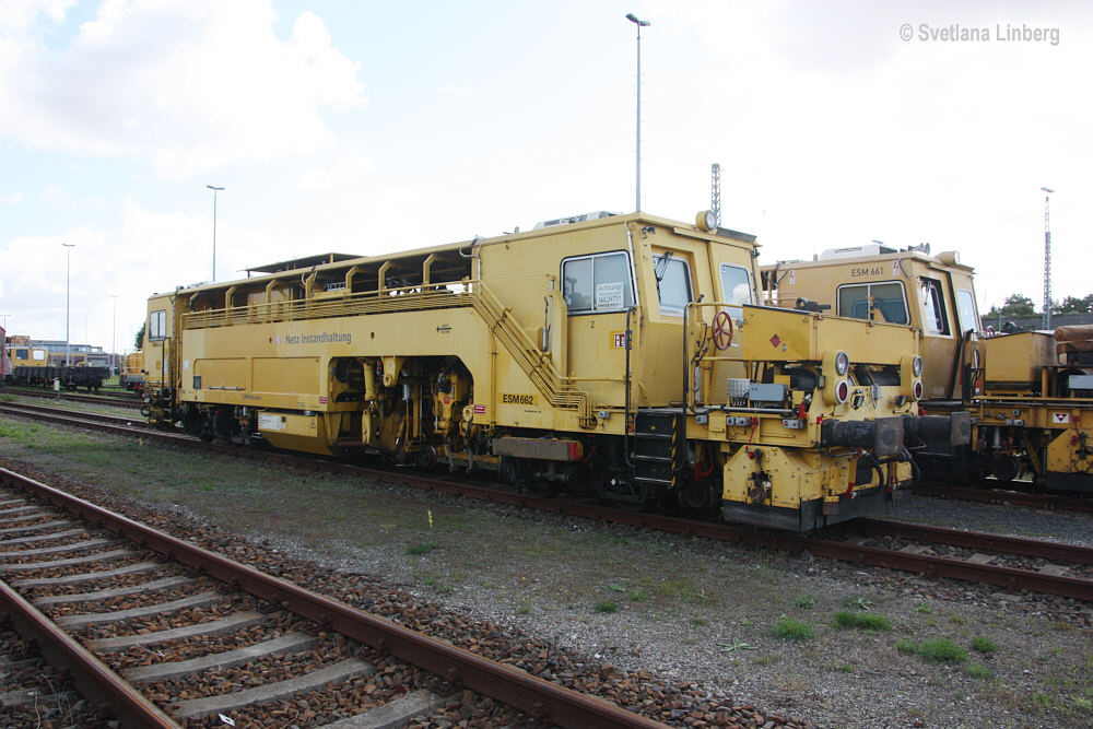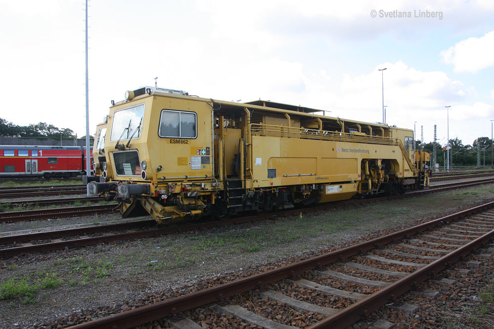 99 80 9 122 003-3 D-DBMP (ESM 662) ESM 08-275 Sprinter DB InfraGO AG, Maschinenpool, Berlin 6 REV HLEI 1 24.04.20 ex 97 43 52 002 17-0 (ESM 662) Herst. Plasser & Theurer 1999/1140 EBA 98V03J002 Berlin-Grunewald, 05.08.2024 |