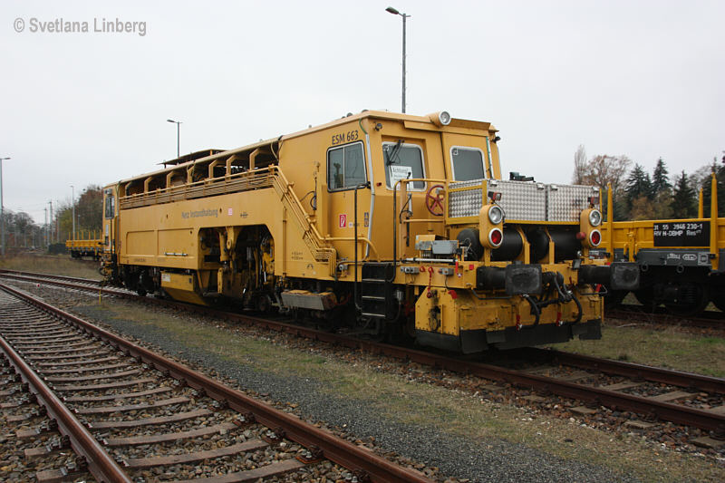99 80 9 122 006-6 D-DB (ESM 663) ESM 08-275 Sprinter DB Netz AG, Maschinenpool, Berlin 6 REV HLEI 1 21.05.21 / 15.06.21 (unterschiedliche Angaben auf Anschriftentafel und Fahrzeug!) ex 97 43 52 005 17-3 (ESM 663) Herst. Plasser & Theurer 2000/1168 EBA 00L02A005 Berlin-Grunewald, 23.11.2023 |