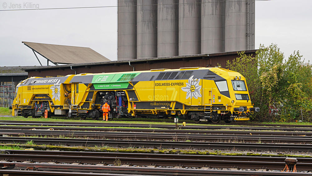 99 80 9 124 034-6 D-EVULW "Edelweiss-Express" Stopfroboter 4.0 S7 PLS 16 4.0-S Fa. Leonhard Weiss GmbH & Co. KG Herst. System 7 Rail Technology GmbH Singen (Hohentwiel), 10.2024 Foto: Jens Killing |