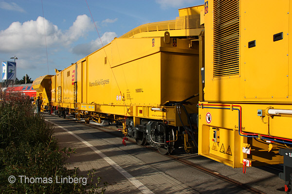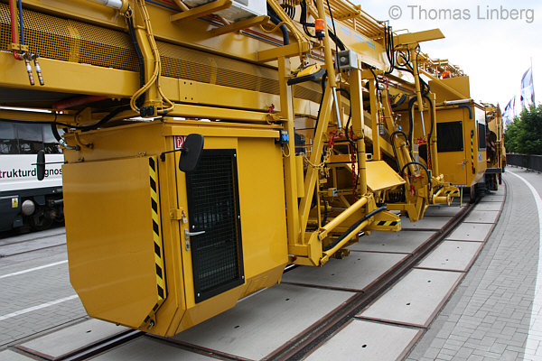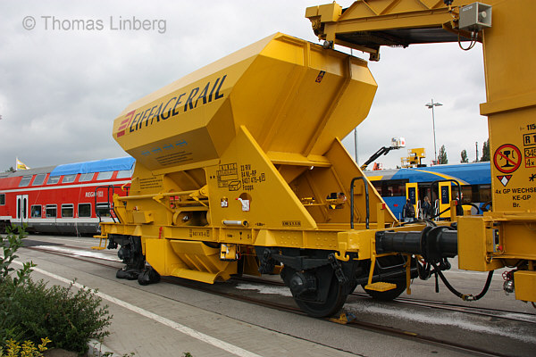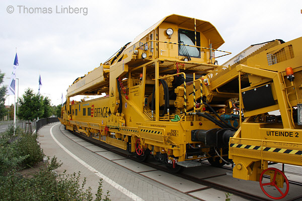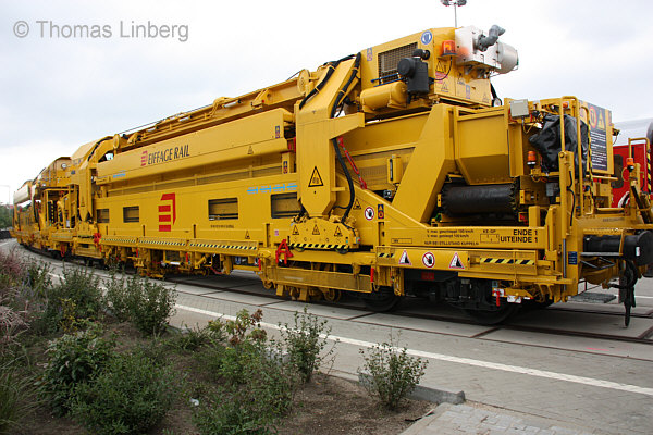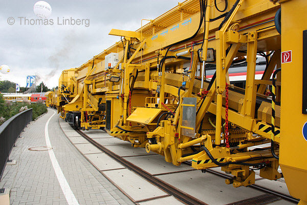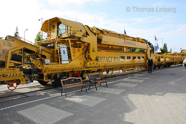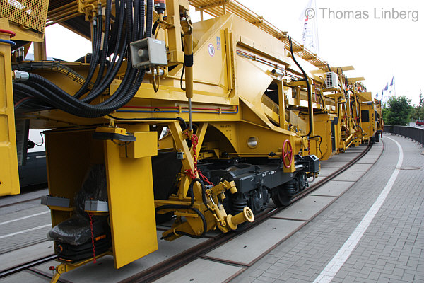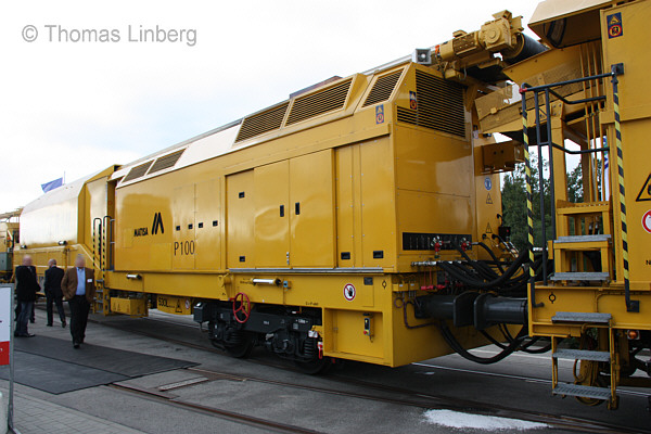 Eines der Highlights auf der InnoTrans 2010 in Berlin und mit 115 m Länge sicher auch eines der längsten Ausstellungsobjekte war der Matisa-Umbauzug P100 der Fa. Eiffage Rail.