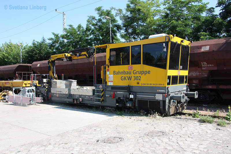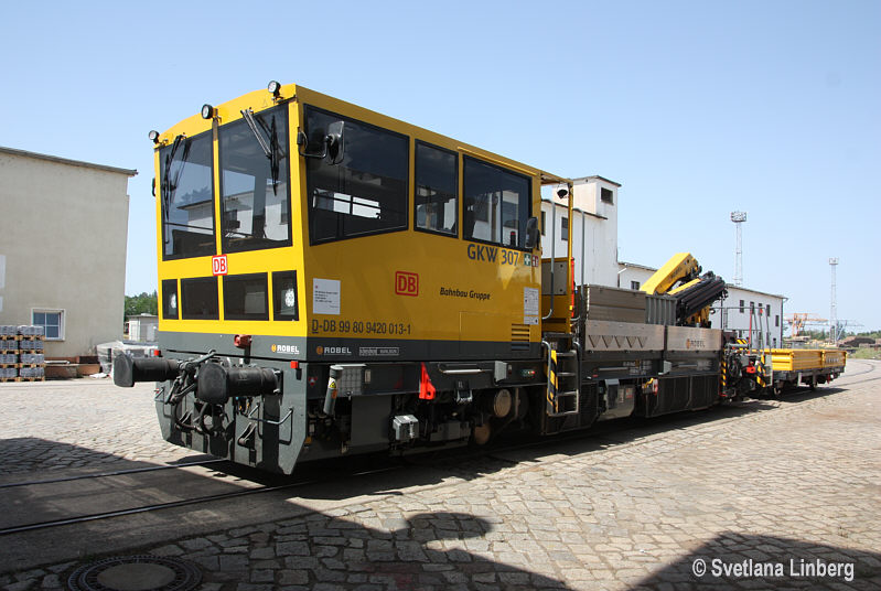99 80 9 420 013-1 D-DB (GKW 307) Gleisarbeitsfahrzeug BAMOWAG 54.24 DB Bahnbau Gruppe GmbH, Berlin 6 REV Robel 19.06.20 ex 97 17 57 002 17-7 Herst. Robel 2003/54.24 - BG 005 EBA 02H07A003 Königsborn, 18.06.2022 Das Fahrzeug ist für Steilstrecken zugelassen! |