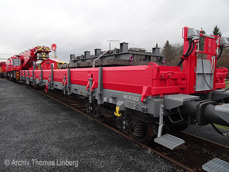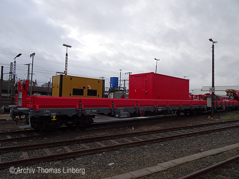 99 80 9 570 070-9 (790 001) Materialwagen KRC 1200 DB Netz AG, Maschinenpool, Berlin 6 REV WE X 18.02.14 ex 31 80 393 9 720-3 Res 687 Herst. Graaff 1983 Fulda, 12/2014 Verbleib: Uz 99 80 9 370 070-1 D-DB © Archiv Thomas Linberg Der Wagen gehört zum Eisenbahnkran KRC 1200 99 80 9 471 001-4 Fraglich ist, ob die Nummer 99 80 9 570 070-9 korrekt ist? Lt. Wagenanschriften ist der Wagen für eine Geschwindigkeit von 100 km/h zugelassen. Daher müsste nach meinem Verständnis der UIC-Richtlinie 438-4 und analog zum Gegenlastwagen die Nummer 99 80 9 370 070-1 lauten. Kann hier evtl. einer der Leser etwas dazu sagen? Mittlerweile trägt der Wagen die korrekte Nummer 99 80 9 370 070-1 D-DB. |